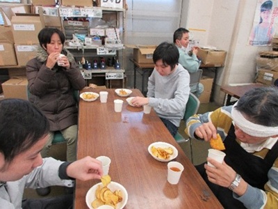 11月(がつ)28日(にち)(金(きんようび))に市内幼稚園(しないようちえん)に駐車場(ちゅうしゃじょう)をお貸(か)しした時(とき)に頂(いただ)いた、さつまいもをスライサーで薄(うす)く切(き)り油(あぶら)で揚(あ)げた「さつまいもチップス」をみんなで頂(いただ)きました~(^^♪ 皆様笑顔(みなさまえがお)で大満足(だいまんぞく)な様子(ようす)でした♡