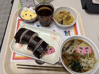節分(せつぶん)の日(ひ)は、豆(まめ)まきをしたり、節分(せつぶん)の特別(とくべつ)メニューを頂(いただ)きました。皆(みな)さん自然(しぜん)と笑顔(えがお)になり星谷(ほしや)にも福(ふく)が来(き)たようです。